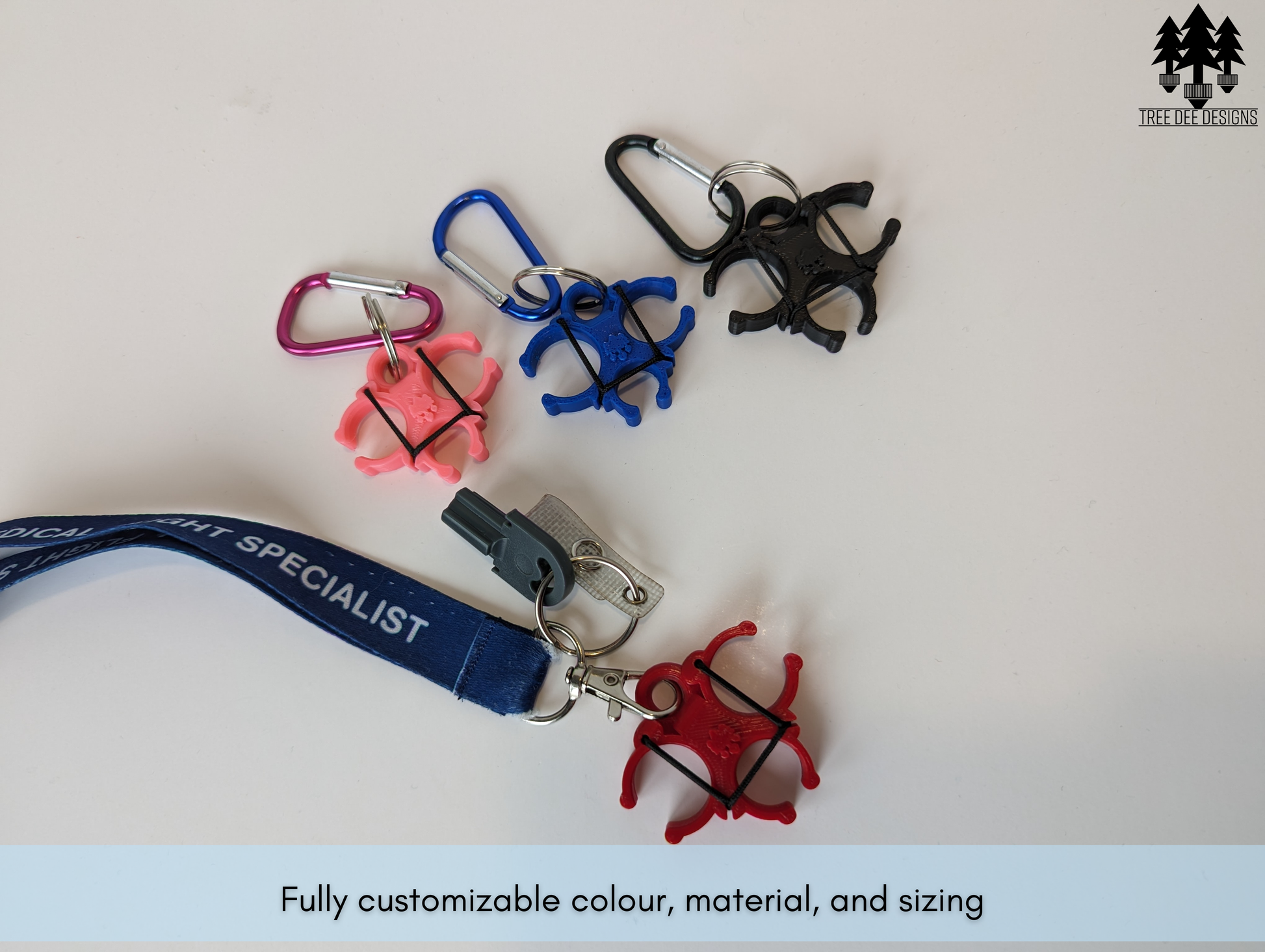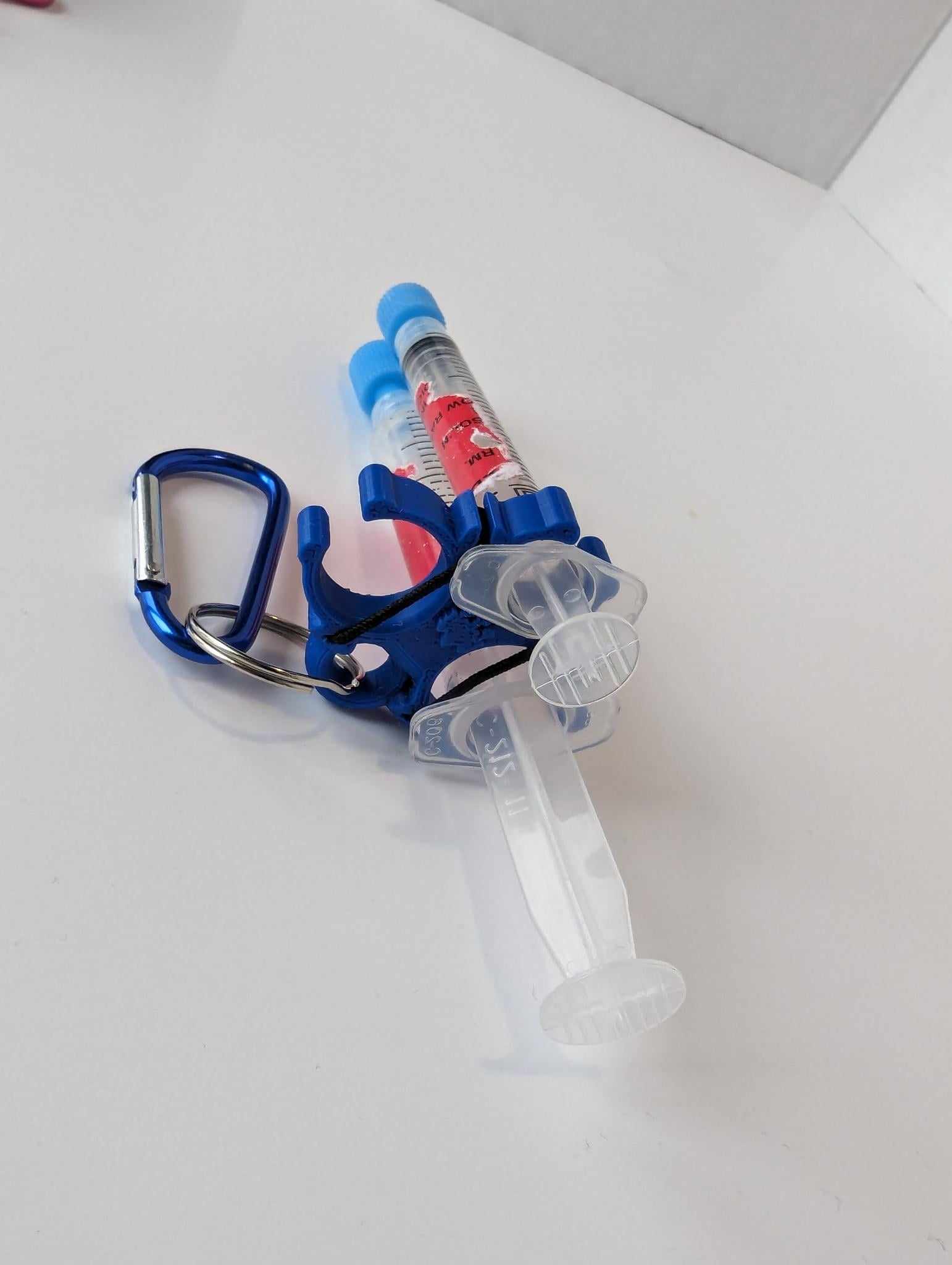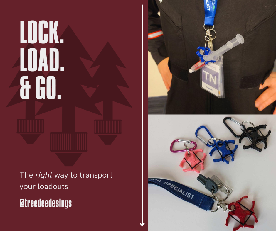 Crafted with precision, the Kraken is ingeniously designed to clip effortlessly onto your nametag, badge reel, or lanyard. Its compact and featherlight presence means it's unobtrusive until the moment it springs into action, securely holding up to three syringes. Whether they're prefilled saline or vital push-dose medications, the Kraken ensures they're instantly accessible, eliminating the scramble during critical moments and keeping your focus sharp where it matters most.