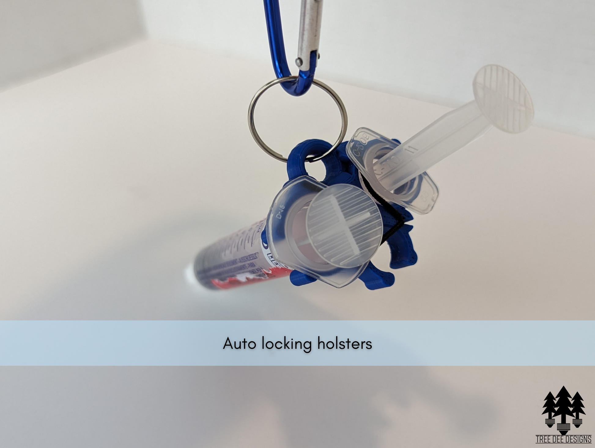 The Kraken isn't just about holding syringes; it's about providing peace of mind with its auto-locking mounts and auto-adjusting slots. These features cater to a variety of syringe sizes—from different brands to those with med label attachments—ensuring a snug, secure fit every time, thanks to its robust elastic bungee cord mechanism.