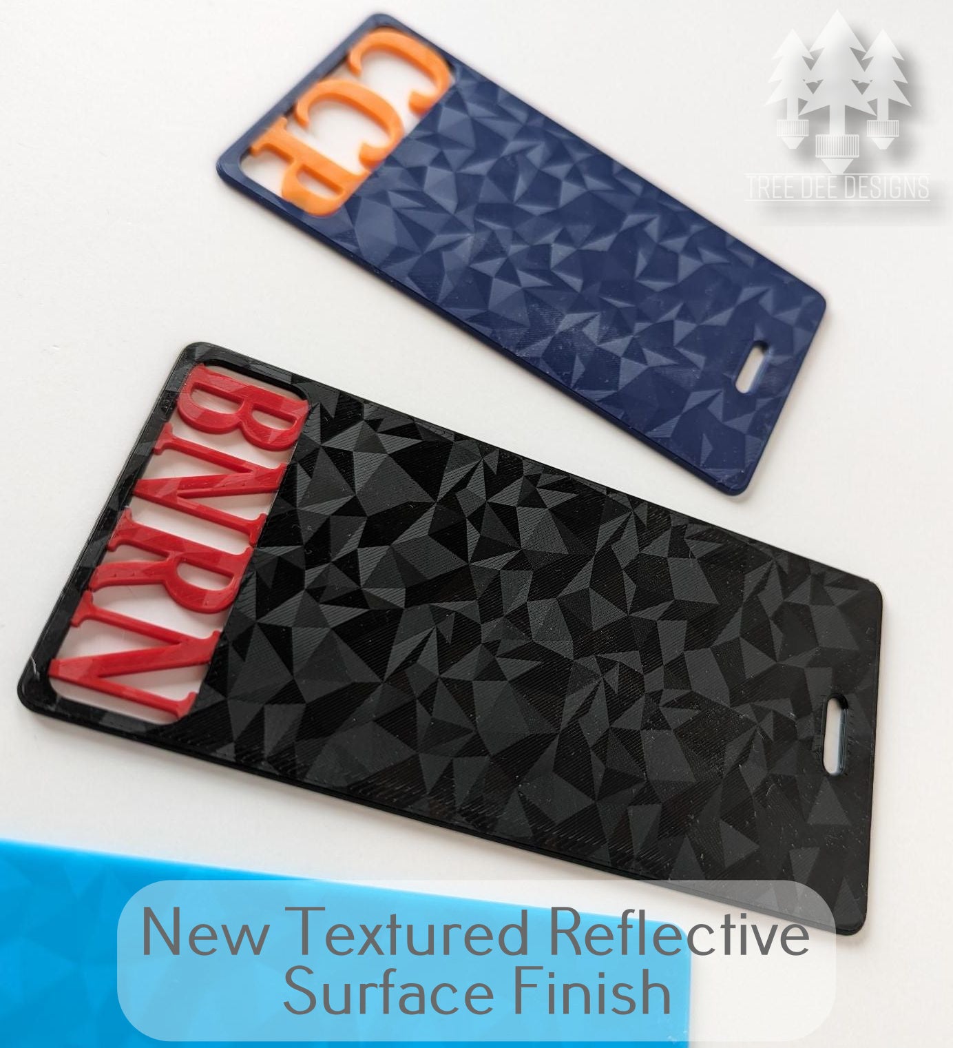 - Customization Options: Available in a wide range of colors for both the lettering and background, the ID PassPal offers three types of surface finishes: Textured Gloss, Smooth Reflective, and Carbon Fiber. You can also add a logo or clipart image to your title area for added personalization.